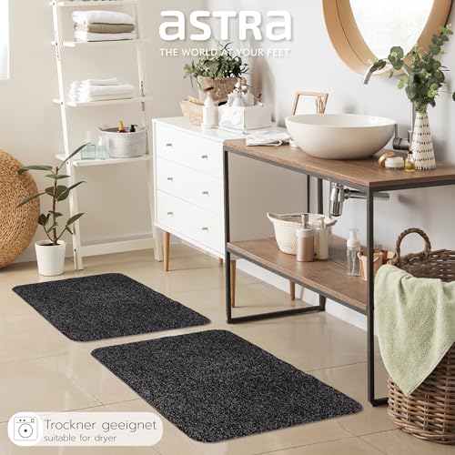 Astra Schmutzfangmatte innen waschbar 60x75 cm – Sauberlaufmatte schwarz 100% Baumwolle Matte - Entra SAUGSTARK - rutschfeste Fußmatte pflegeleicht