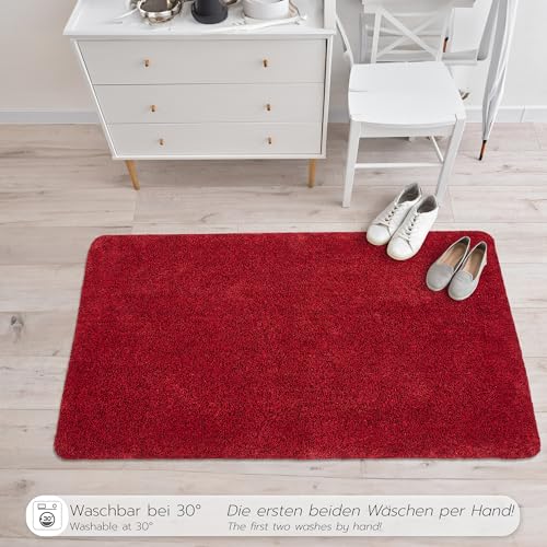Astra Schmutzfangmatte innen waschbar 90x150 cm – Sauberlaufmatte rot 100% Baumwolle Matte - Entra SAUGSTARK - rutschfeste Fußmatte pflegeleicht