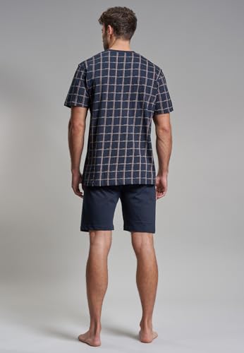 Shorty GÖTZBURG Bronx, Herren, Gr. 50M, blau (navy), Single Jersey, Obermaterial: 100% Baumwolle, bedruckt, kariert, bequem kniefrei, V-Ausschnitt, Homewear-Sets, Kurzarm, V-Ausschnitt, kurze Hose, Baumwolle, mit Muster
