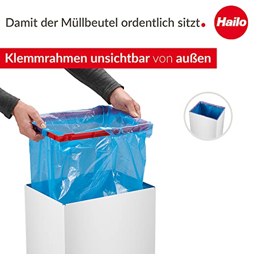 Hailo Big-Box Swing L Mülleimer - 1 x 35 Liter - selbstschließender Schwingdeckel - Stahlblech - Müllbeutel-Klemmrahmen - Mülleimer Küche rechteckig - Abfalleimer made in Germany - weiß