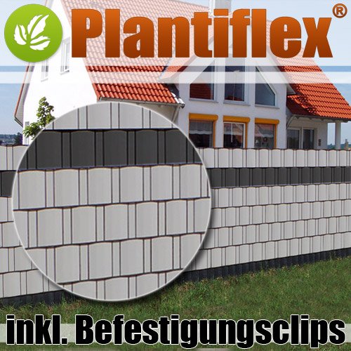 Plantiflex Sichtschutz Rolle 35m Blickdicht PVC Zaunfolie Windschutz für Doppelstabmatten Zaun (Grau)