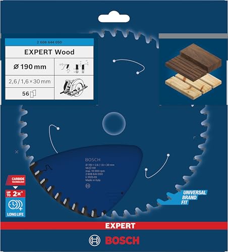 Bosch Professional 1x Kreissägeblatt Expert for Wood (Holz, Sägeblatt Ø 190 x 30 x 2,6 mm, 56 Zähne, Zubehör Kreissäge)