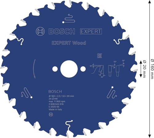 Bosch Professional Kreissägeblatt Expert für Wood (Holz, 160 x 20 x 2,6 mm, 24 Zähne, Zubehör Kreissäge), 2608644019