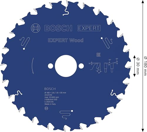 Bosch Professional 1x Kreissägeblatt Expert for Wood (Holz, Sägeblatt Ø 180 x 30 x 2,6 mm, 24 Zähne, Zubehör Kreissäge)