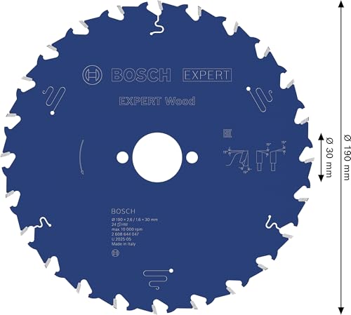 Bosch Professional Zubehör, Sägeblatt, Kreissägeblatt Expert for Wood, 190 x 30 x 2,0 mm, 24