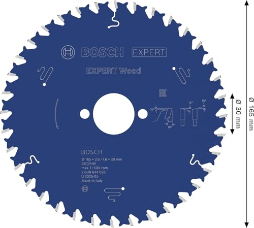 Bosch Professional 1x Kreissägeblatt Expert for Wood (Holz, Sägeblatt Ø 165 x 30 x 2,6 mm, 36 Zähne, Zubehör Kreissäge)