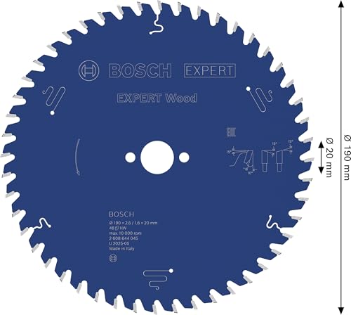 Bosch Professional 1x Kreissägeblatt Expert for Wood (Holz, Sägeblatt Ø 190 x 20 x 2,6 mm, 48 Zähne, Zubehör Kreissäge)