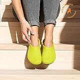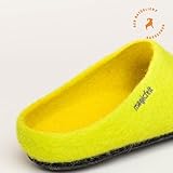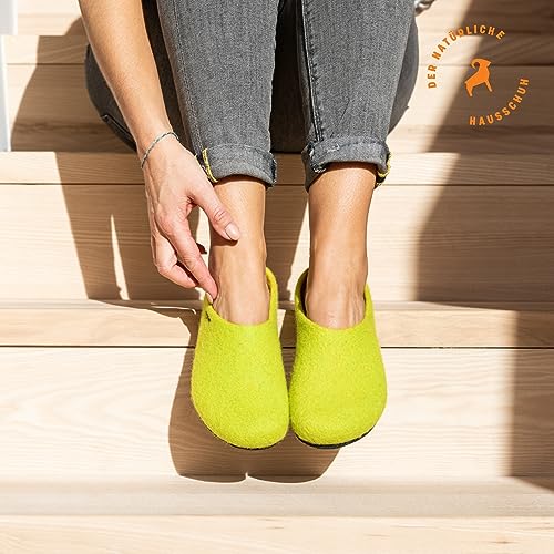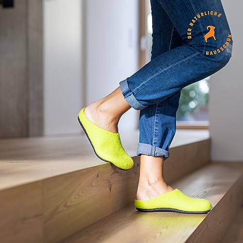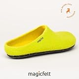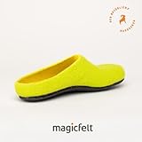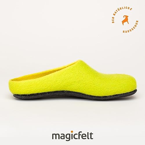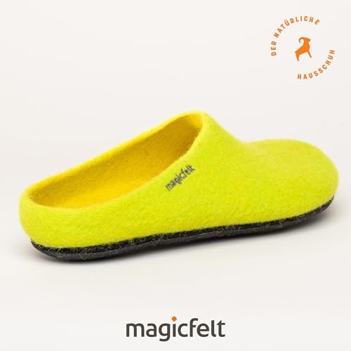 Magicfelt Filzpantoffeln 709 aus Mulesing-freier Merino-Schurwolle – Handgefertigte & anatomisch geformte Hausschuhe für Damen & Herren Größe EU 36-50 – Filzclogs mit Filz-Latex-Sohle Lemon, 39