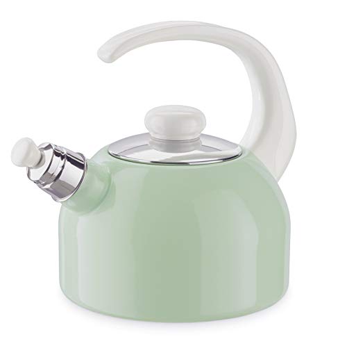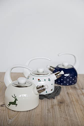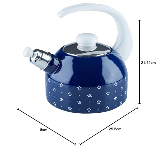 Riess, Flötenkessel Plus 2L, Gewicht 1,21kg, dreifach emailliert, Wasserkessel mit Flötenpfeife, Induktion, Retro, hergestellt in Österreich, LBH 26,2x18,4x21,9cm (BLÜMCHENBLAU, 2 l)