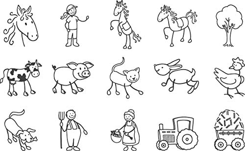 6 x Heyda Stempelset Holz Bauernhof & Pferd Motive für Kinder 1,5x1,5c