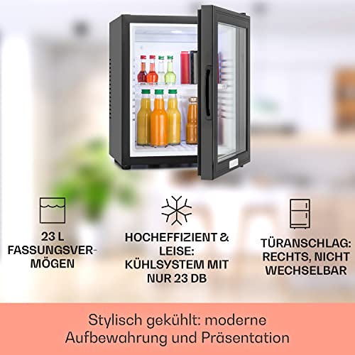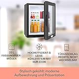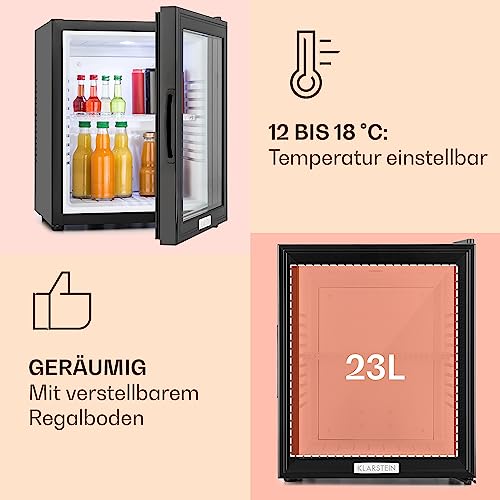 Klarstein Brooklyn Kühlschrank, Mini-Kühlschrank für Zimmer & Büro, Kleiner Kühlschrank für Getränke, Snacks & Kosmetik, Leiser Getränkekühlschrank, Mini Kühlschrank mit Glastüre, Minibar 12-18°C, 23L