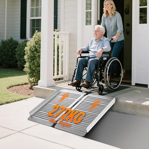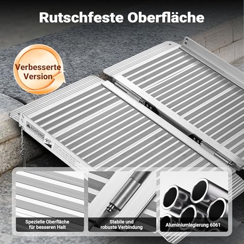 Wiltec - Rollstuhlrampe faltbar 62 cm 270 kg, mobile Auffahrschiene als Rollirampe, Aluminium Kofferrampe, Flachrampe klappbar