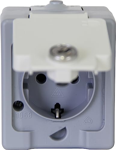 KOPP Feuchtraum-Steckdose 105648002, Klappdeckel abschließbar, grau