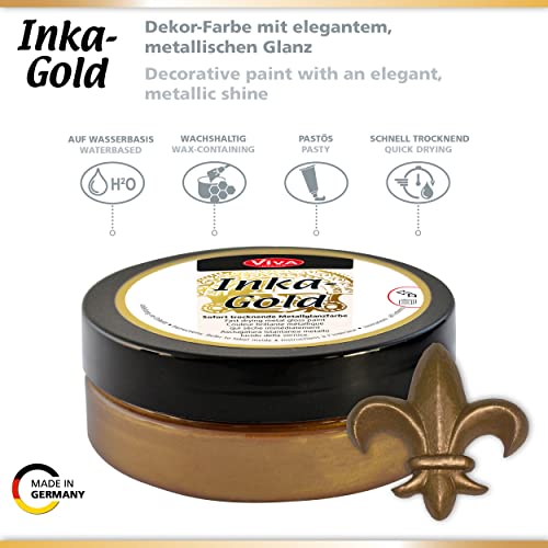 Viva Decor Inka Gold 62,5g (Gold Braun) - Einfach auftragbare, wachshaltige Metallic Polierpaste. Schnell Trocknender Metallglanz, Hochglanz-Effekte für DIY. Dekorpaste für Holz, Ton & Terracotta