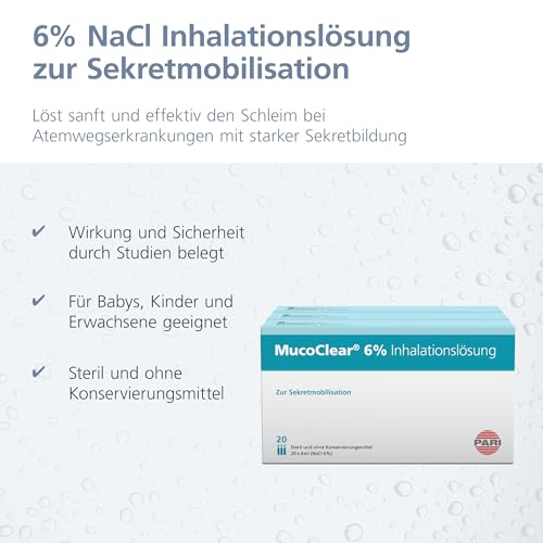 PARI MucoClear 6% NaCl Inhalationslösung - Hypertone Kochsalzlösung zum Inhalieren – 60 Ampullen je 4ml