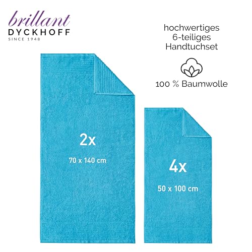 Dyckhoff Handtuchset "Brillant", 2 Badetücher / Duschtücher 70 x 140 cm und 4 Handtücher 50 x 100 cm, 6-teilig, türkis