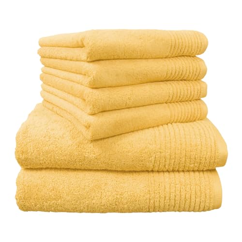 Dyckhoff Handtuchset "Brillant", 2 Badetücher / Duschtücher 70 x 140 cm und 4 Handtücher 50 x 100 cm, 6-teilig, mais
