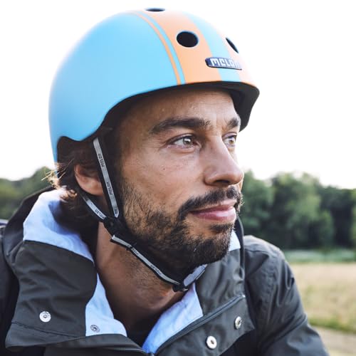 Melon Fahrradhelm »Double Orange Blue« für Damen, Herren und Kinder | Leichter & sicherer urbaner Cityhelm mit Magnetverschluss, individuell anpassbar in blau, orange | Größe XXS-S (46–52cm)