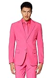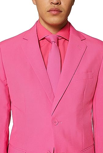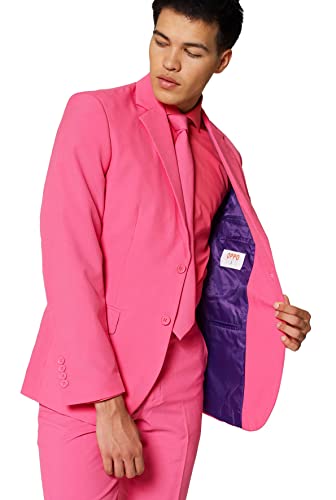 OppoSuits Modisch Party Einfarbige Anzüge für Herren - Mit Jackett, Hose und Krawatte, Rosa (Mr. Pink), 56 EU