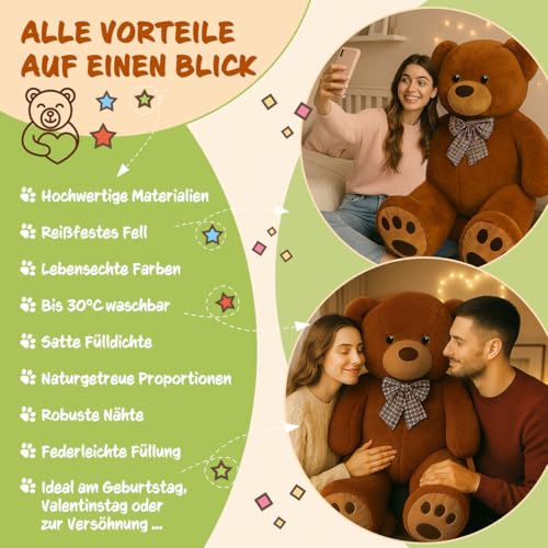 DeubaXXL DE Plüschtier Teddybär XXL Braun 150cm 101253