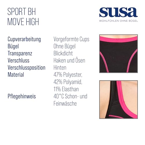 SUSA Sport BH Damen ohne Bügel Move high I Damen-BHS mit vorgeformten Cups I Sport Crop Top BH I Starker Halt I Transportiert Schweiß zuverlässig ab