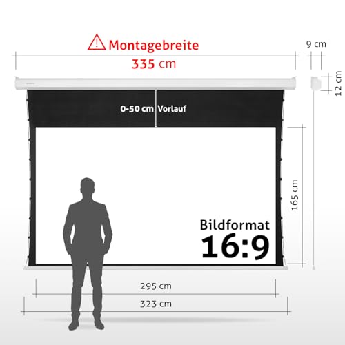 ESMART Professional TATENSO Tension-Leinwand 335 cm Bild 295 x 165 cm (133") 16:9 | Programmierbare Fernbedienung | Heimkino elektrische Beamer Projektionsleinwand Motor LCD LED