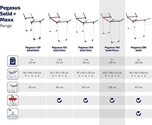 Leifheit Standtrockner Pegasus 180 Solid MAXX mit extra Langen Trockenstäben, extra hoher Flügelwäschetrockner, transportabler Wäscheständer, klappbar