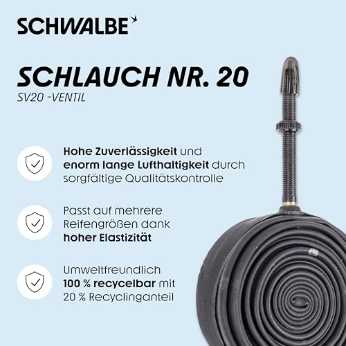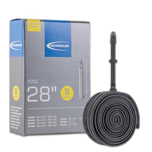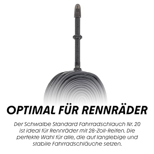 Schwalbe Fahrradschlauch Nr. 20 Extra Light – Rennrad Schlauch 28 Zoll / 700C (ETRTO 18/25-622/630) – SV-Ventil in 40–80 mm – Ultraleicht & zuverlässig – Butylschlauch für Rennrad
