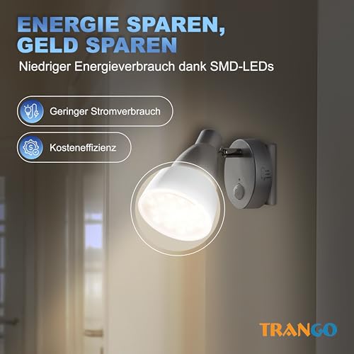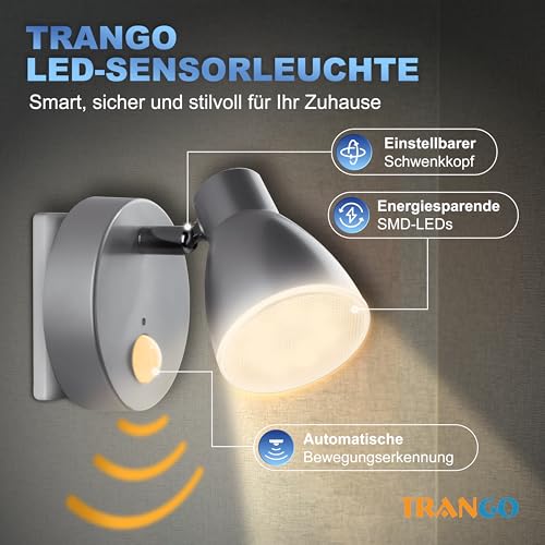 Trango TG2635-014 LED Sensor Nachtlicht – Titan – Drehbar & Schwenkbar – Automatikfunktion – Bewegungssensor – 230V Steckdosenlampe – Sicherheits- & Orientierungslicht