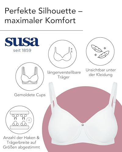 Susa Spacer BH Damen mit Bügel Catania I Damen-BHS aus atmungsaktivem Spacer Material I Angenehmes Hautgefühl I Cups ohne Naht vorgeformt I weiß I 85C