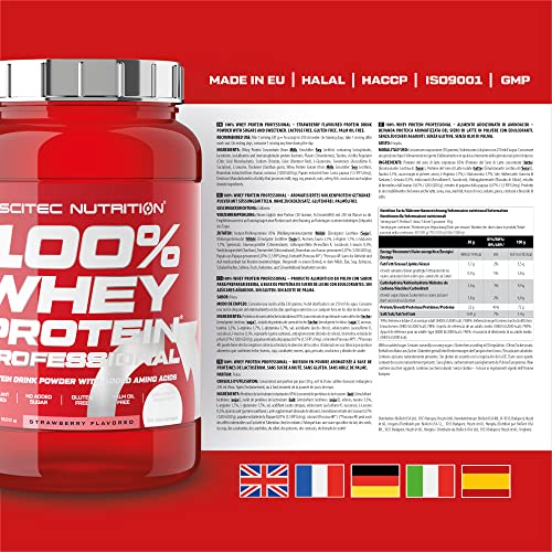 Scitec Nutrition 100% Whey Protein Professional - Angereichert mit zusätzlichen Aminosäuren und Verdauungsenzymen - Glutenfrei - Palmölfrei, 920 g, Erdbeere