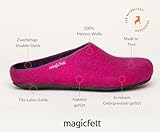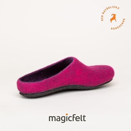 Magicfelt Filzpantoffeln 709 aus Mulesing-freier Merino-Schurwolle – Handgefertigte & anatomisch geformte Hausschuhe für Damen & Herren Größe EU 36-50 – Filzclogs mit Filz-Latex-Sohle Magenta, 42