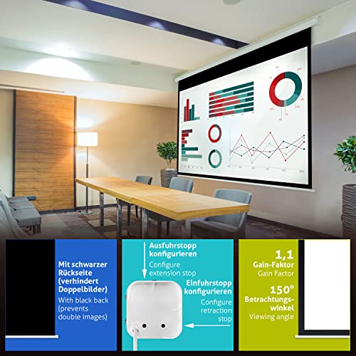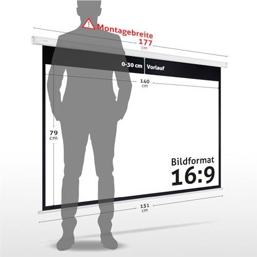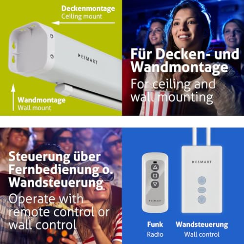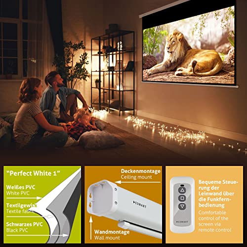 ESMART Economy EXM Motor-Leinwand 177 cm Bild 140 x 79 cm (63") | Format 16:9 | Fernbedienung | Heimkino elektrische Beamer Projektionsleinwand Motor Leinwand LCD