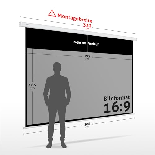 ESMART Professional MIMOTO GRAU Tageslicht-Motor-Leinwand 332 cm Bild 295 x 165 cm (133") 16:9 | Programmierbare Fernbedienung | Heimkino elektrische Beamer Projektionsleinwand | LCD LED