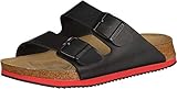 Birkenstock Sandale Arizona Superlauf, Birko-Flor Pantolette Schuh Halbschuh Latsche Zweischnaller Berufsschuh Schuhe Birki Arizona Slipper - Schwarz/Rot - Normal - Gr. 35