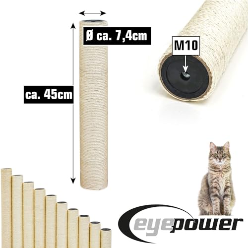 eyepower 45 cm Pfotenfreund Ø 7,1 cm: M10 Sisalstamm für Kratzbaum Ersatzstamm - 100% Natur Sisal Stamm Kratzsäule - Kratzstamm für Katzen Stabil - Katzenkratzbaum Ersatzteile Sisalstämme Sisalsäulen