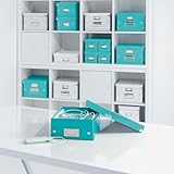 Leitz Click & Store Aufbewahrungsbox mit Deckel Klein, Box für Unterlagen bis A5 im Büro u. Haushalt, Transportbox aus 84% recycelter Premium-Hartpappe, Etikettenhalter, Eisblau, 60430051
