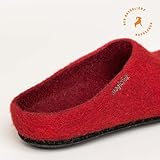 Magicfelt Filzpantoffeln 709 aus Mulesing-freier Merino-Schurwolle – Handgefertigte & anatomisch geformte Hausschuhe für Damen & Herren Größe EU 36-50 – Filzclogs mit Filz-Latex-Sohle Rubin, 36