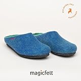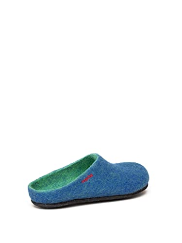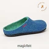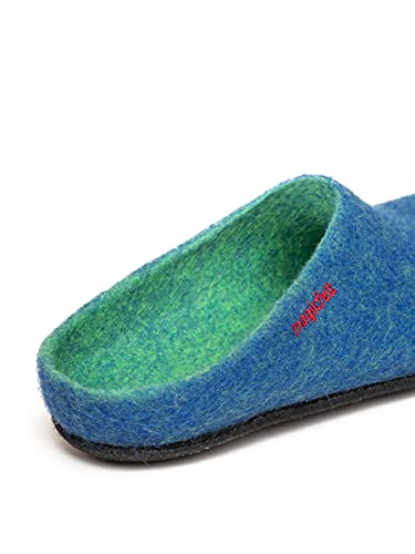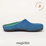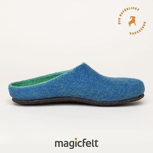 Magicfelt Filzpantoffeln 709 aus Mulesing-freier Merino-Schurwolle – Handgefertigte & anatomisch geformte Hausschuhe für Damen & Herren Größe EU 36-50 – Filzclogs mit Filz-Latex-Sohle Lagoon, 42