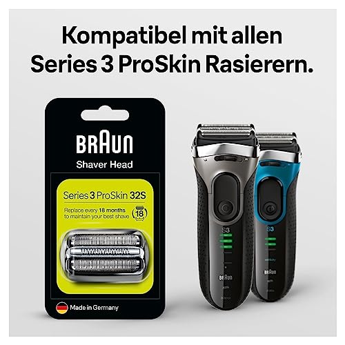 Braun Series 3 ProSkin Scherkopf, Elektrorasierer Ersatzscherteil für Rasierer Herren, Made in Germany, 32S, silber, 1er Pack