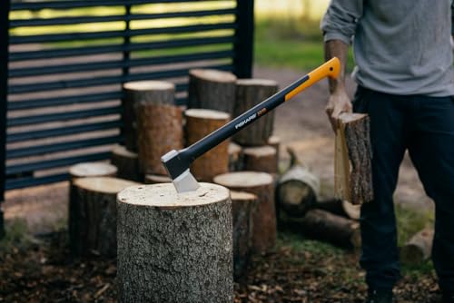 Fiskars Spaltaxt, Inklusive Klingen- und Transportschutz, Länge: 71 cm, Antihaftbeschichtet, Hochwertige Stahl-Klinge/Glasfaserverstärkter Kunststoff-Stiel, Schwarz/Orange, X21–L, 1,63 kg, 1015642