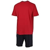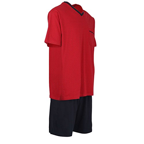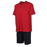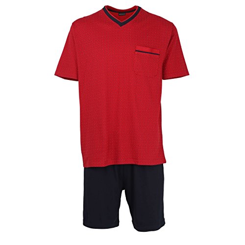 Shorty GÖTZBURG Manhattan, Herren, Gr. 50M, rot (chili pepper), Single Jersey, Obermaterial: 100% Baumwolle, bedruckt, gemustert, bequem kniefrei, V-Ausschnitt, Homewear-Sets Shorty, Kurzarm, V-Ausschnitt, kurze Hose, Baumwolle, weich