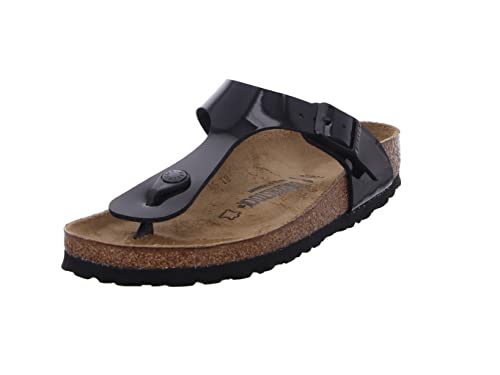 Birkenstock, Damen, Sandalen, Gizeh Birko-Flor Lack schmal, Schwarz, (37)