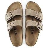 BIRKENSTOCK Arizona Veloursleder-Schlappen Damen und Herren Pantoletten Haus-Schuhe Made in Germany schmale Breite 51463 Taupe-Grau - neutral - Size: 36