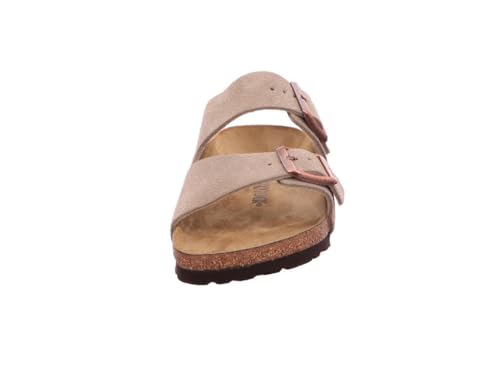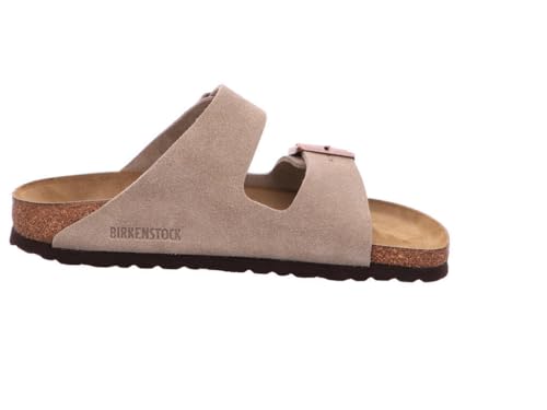 BIRKENSTOCK Arizona Veloursleder-Schlappen Damen und Herren Pantoletten Haus-Schuhe Made in Germany schmale Breite 51463 Taupe-Grau - neutral - Size: 37