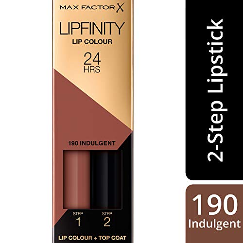 Max Factor Lipfinity Lip Colour Indulgent 190 – Kussechter Lippenstift mit 24h Halt ohne auszutrocknen, intensiver Farbabgabe & präzisem Applikator - mit intensiv pflegendem Gloss-Top Coat
