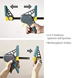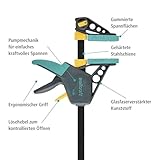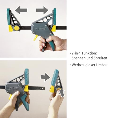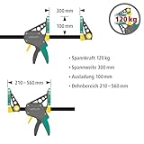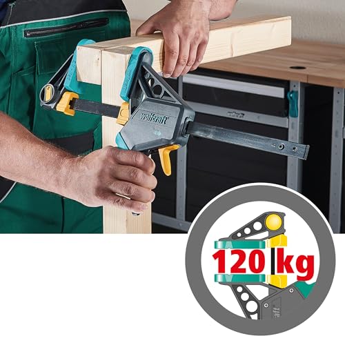 wolfcraft EHZ 100-300 Einhandzwinge PRO 3031000 - Kraftvolle Zwinge zum professionellen Spannen von Werkstücken mit nur einer Hand - Spannkraft: 120 kg - Spannweite: 300 mm