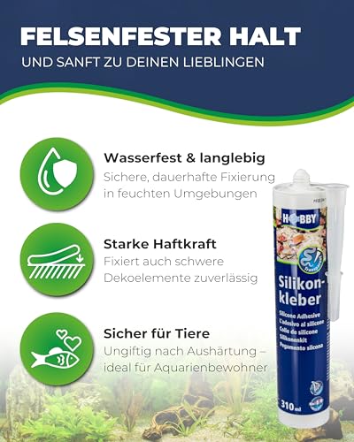 HOBBY Aquaristik Silikonkleber I 310 ml Kartusche I hochelastischer Silikon für Aquarien I alterungs- & witterungsbeständiger Aquarien-Silikon I Aquarienkleber UV- & temperaturresistent I transparent