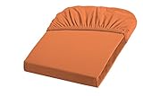 fleuresse Jenny C klassisches Jersey-Spannlaken, 100% Baumwolle, mit praktischem Rundumgummi, Fb. Terracotta, Größe 100 x 220 cm, auch passend für 90 x 200