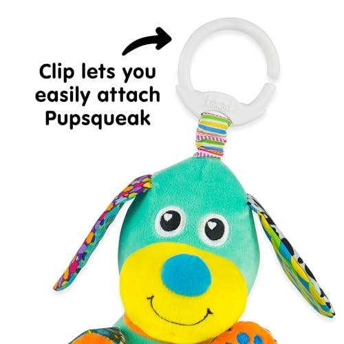 Lamaze Baby Spielzeug "Lustiger Soundhund" Clip & Go, das hochwertige Kleinkindspielzeug. Der quietschbunte Greifling fördert die Motorik und ist das perfekte Kinderwagenspielzeug und Kuscheltier, Mehrfarbig, LC27023